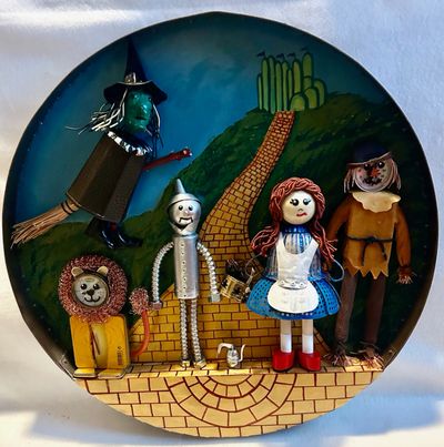 While we were in Prescott today, we stopped in at one of our favorite galleries, Tis, and lo and behold, they are hosting their annual 'Objects Found' exhibit and Debbie Thomas once again, blew us away with her rendition from the "Wizard of Oz." And just a reminder, these are found objects that the artist herself assembled. From inoperative gauges to a copper scouring pad (look closely at the Cowardly Lion,) she assembled a variety of some everyday common items. WOW, WOW, WOW! Even Debbie's 'Peter Pan' assemblage plus other works hit it out of the park! We own one of Debbie's 'objects found' from years ago. It's actually better to view this and her other works in person.